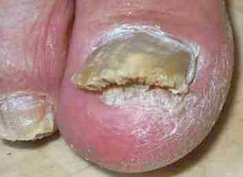 становится неровным, а на самом ногте появляются полосы или пятна. Впоследствии ноготь желтеет или сереет, утолщается, слоится и крошится.