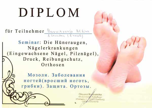 Меня зовут Барвицкая Альбина и я занимаюсь проблемами стопы, вросшего ногтя, мозолей (в т.ч. корневые или стержневые), натоптыши, грибковые ногти (онихомикоз), трещины стопы, грубая кожа подошв (гиперкератоз) и другое.